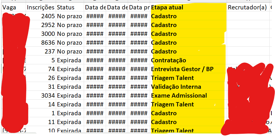 Quando extraímos o relatório essa informação aparece na coluna etapa atual